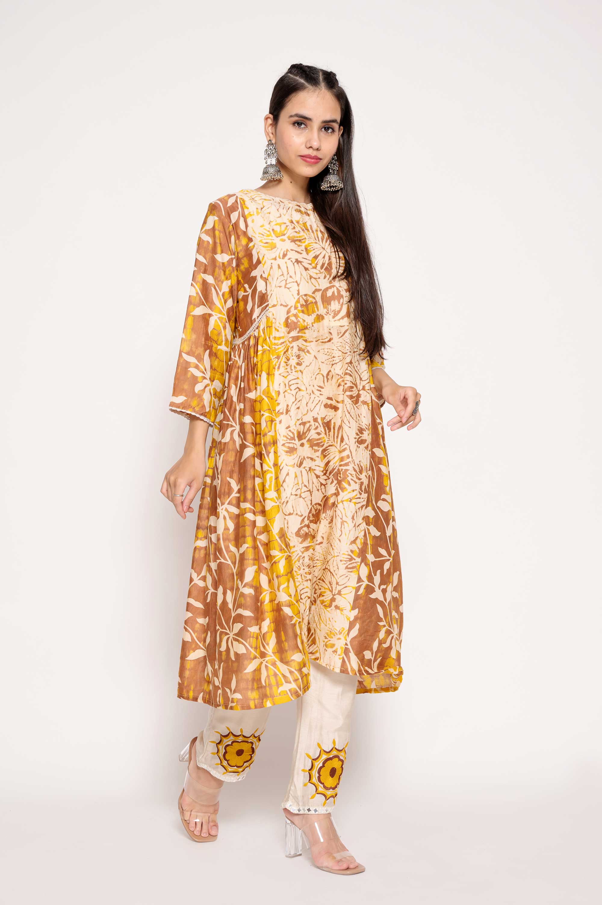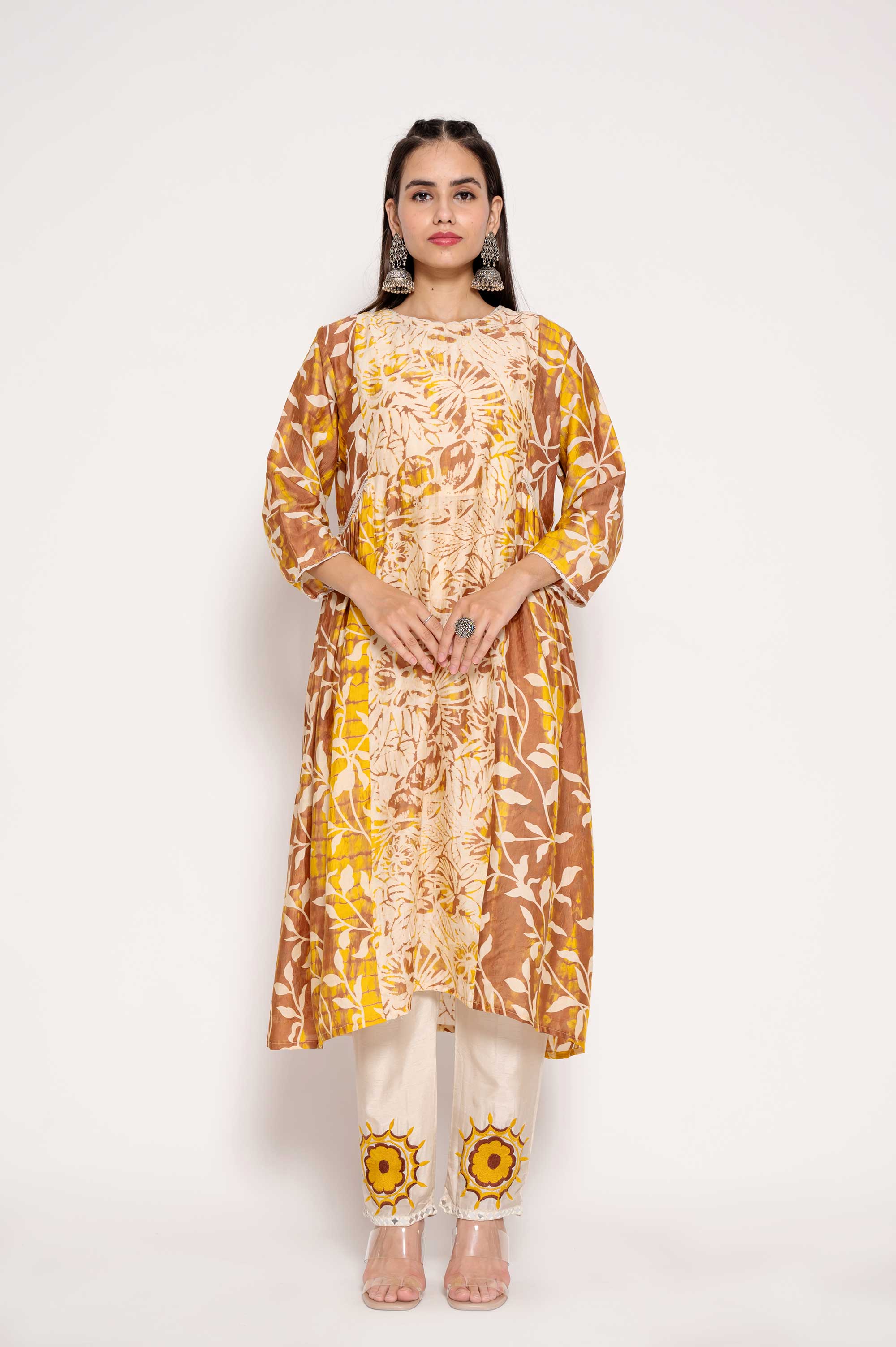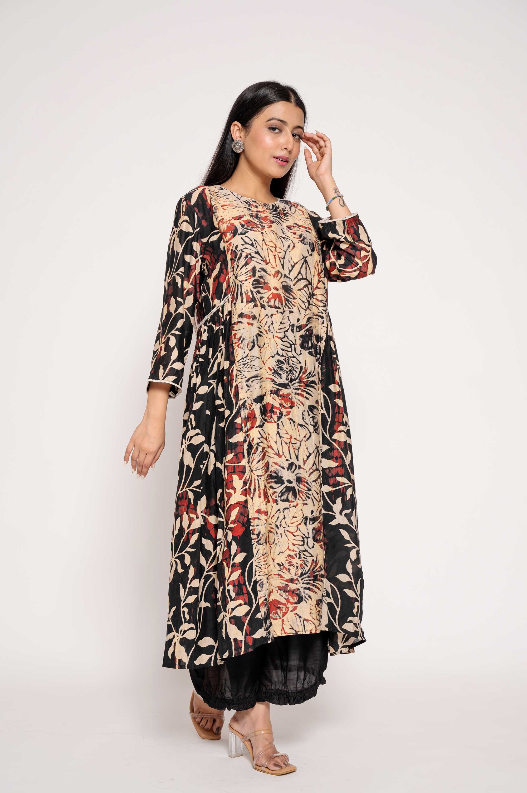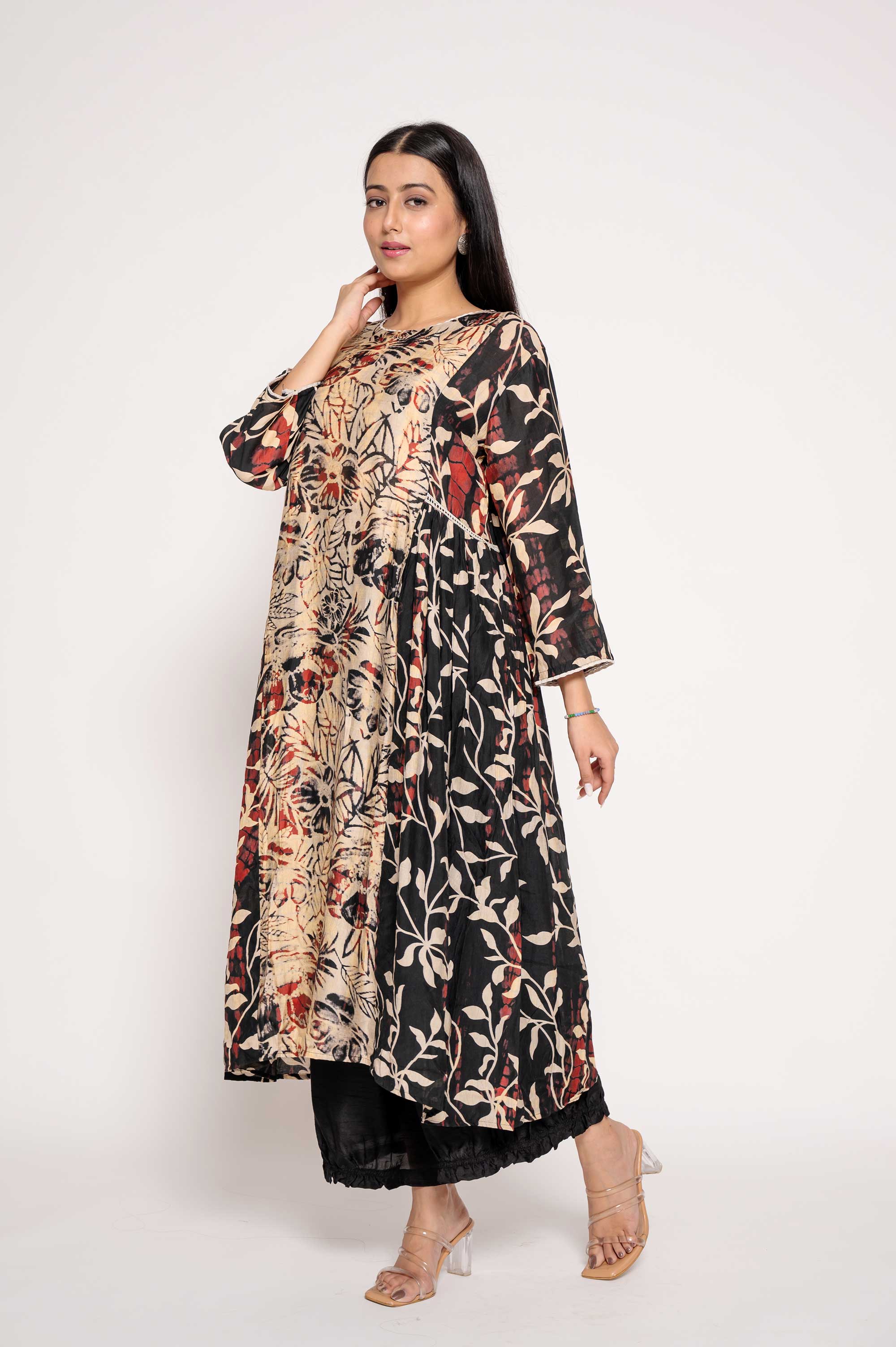 Abstract Print Kurta with Embroidery at solid Pant Helm