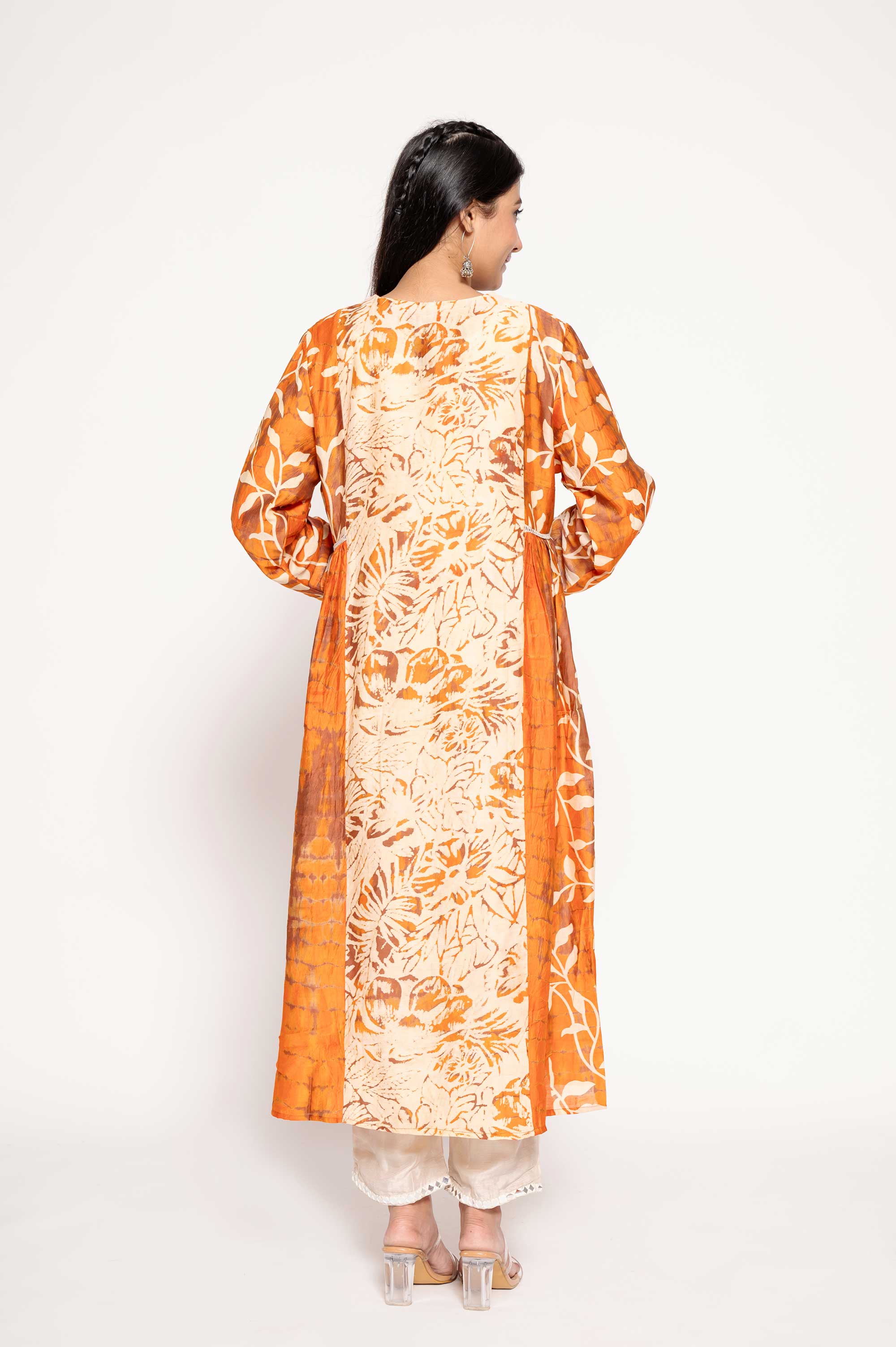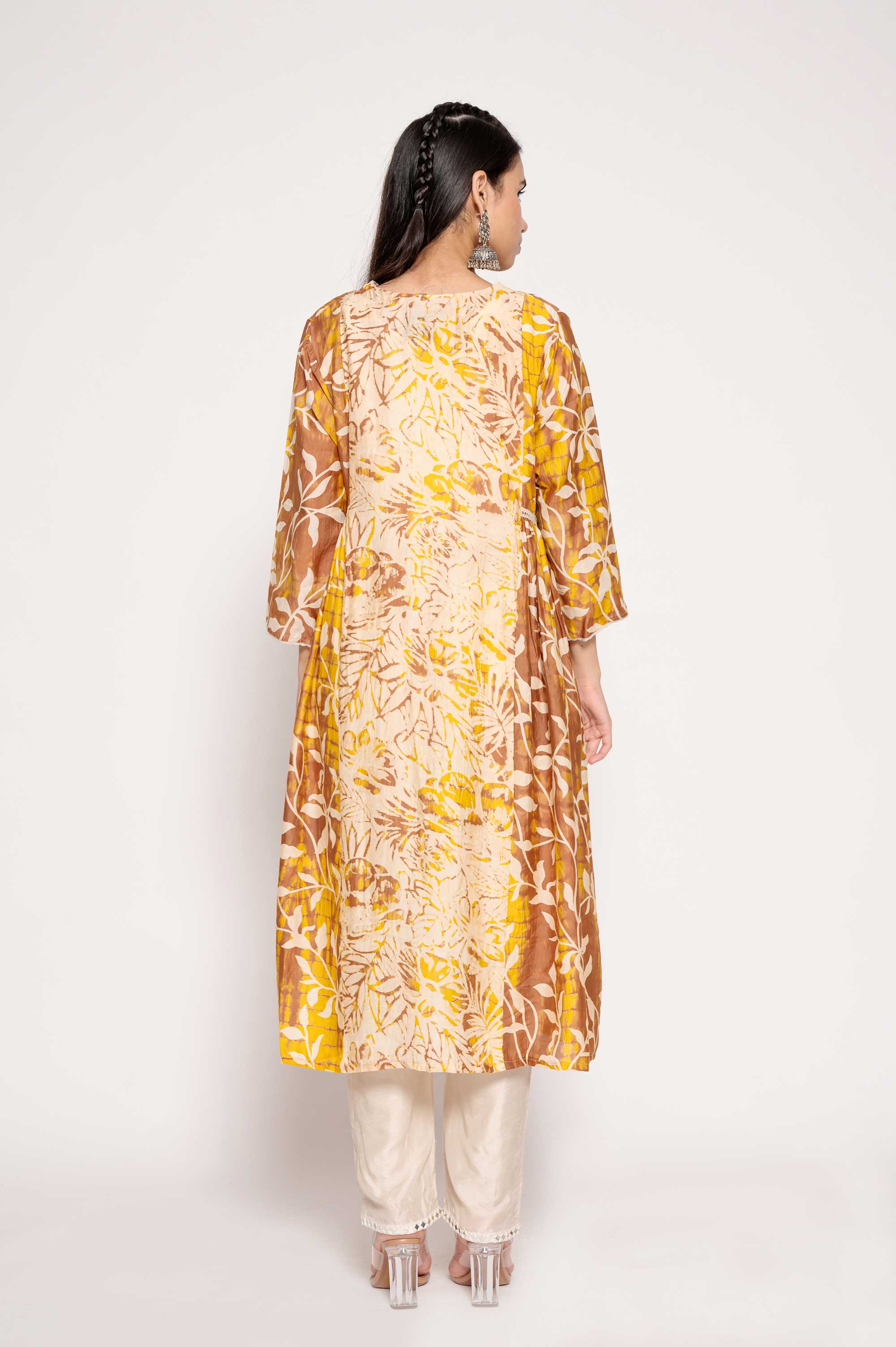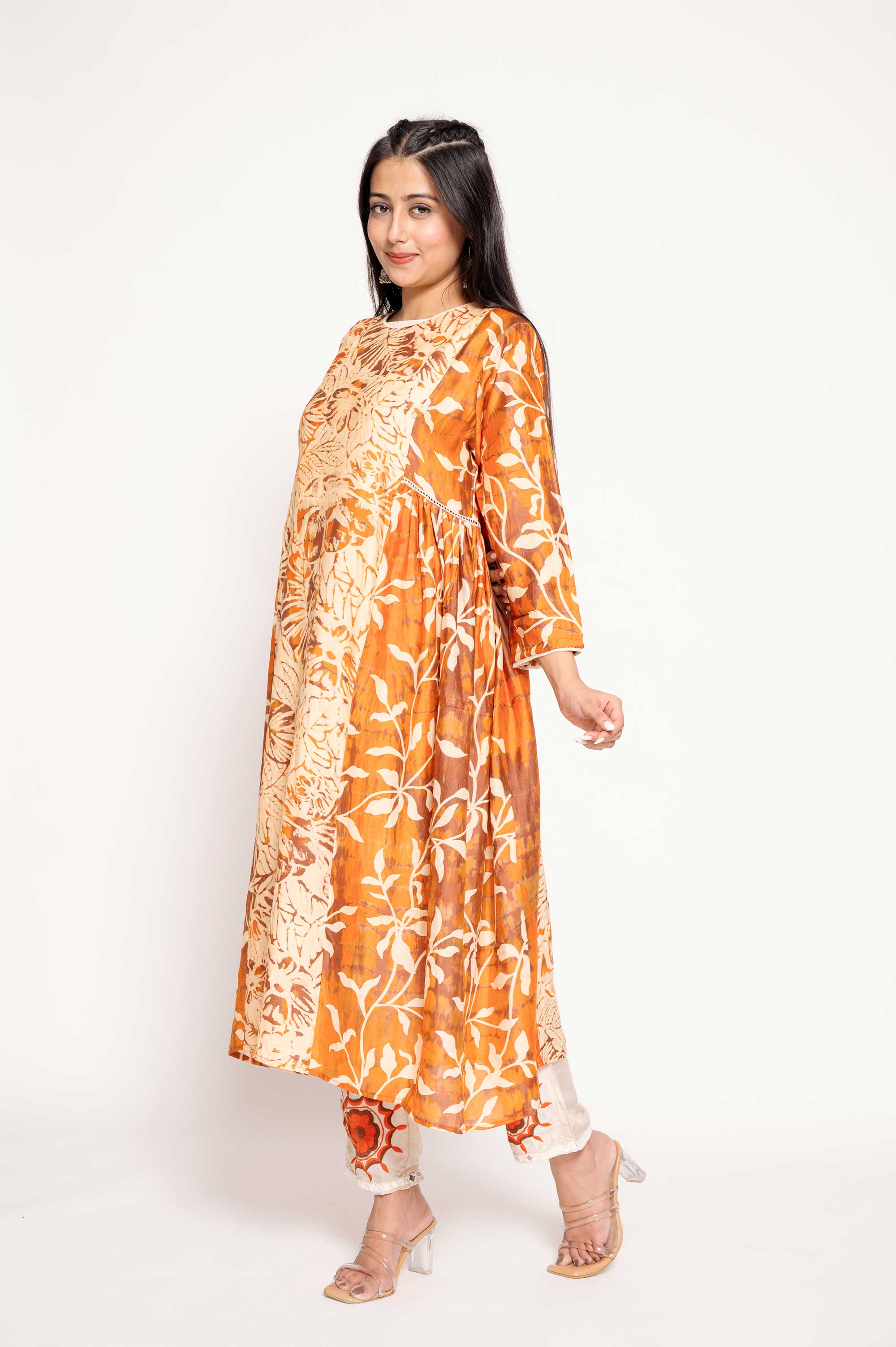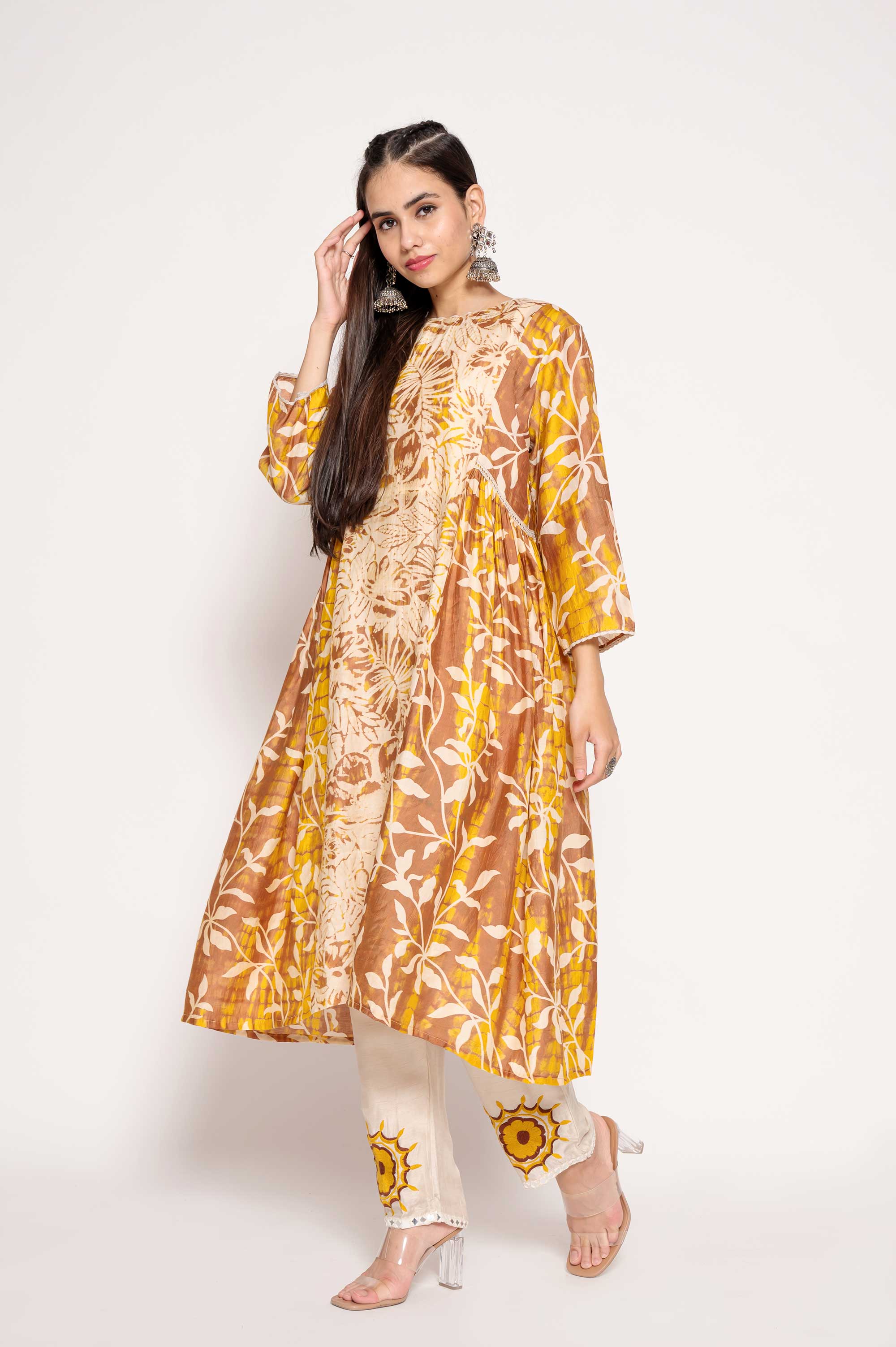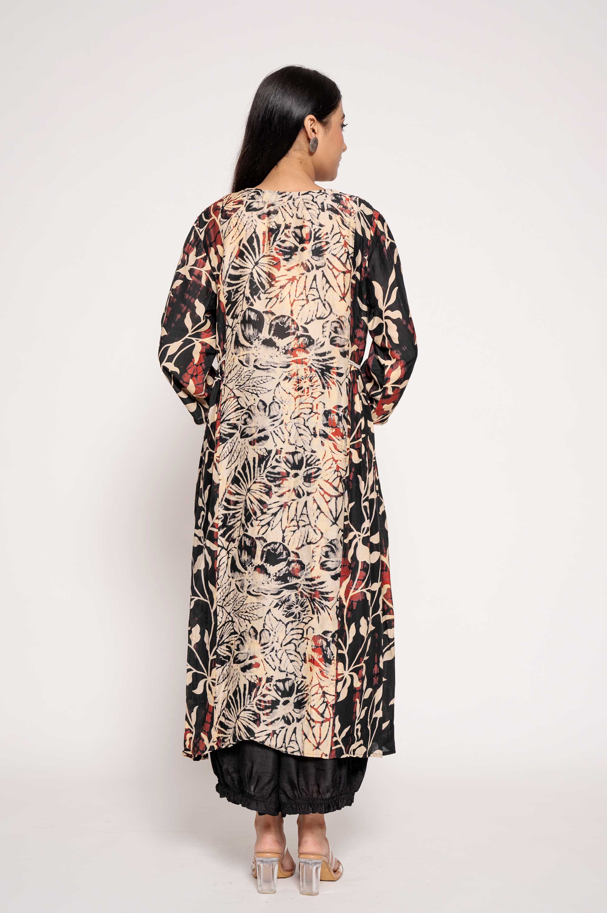 Abstract Print Kurta with Embroidery at solid Pant Helm