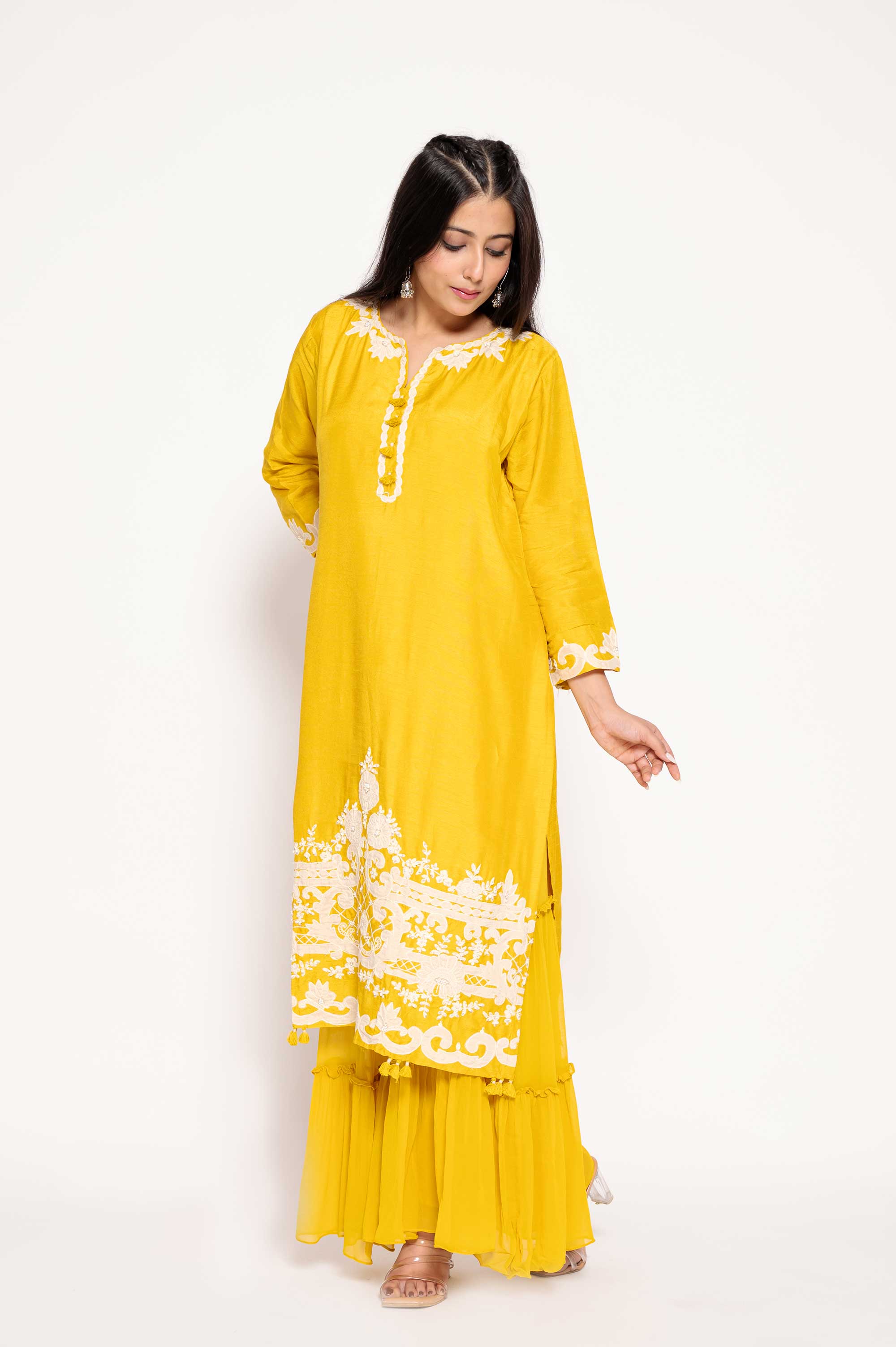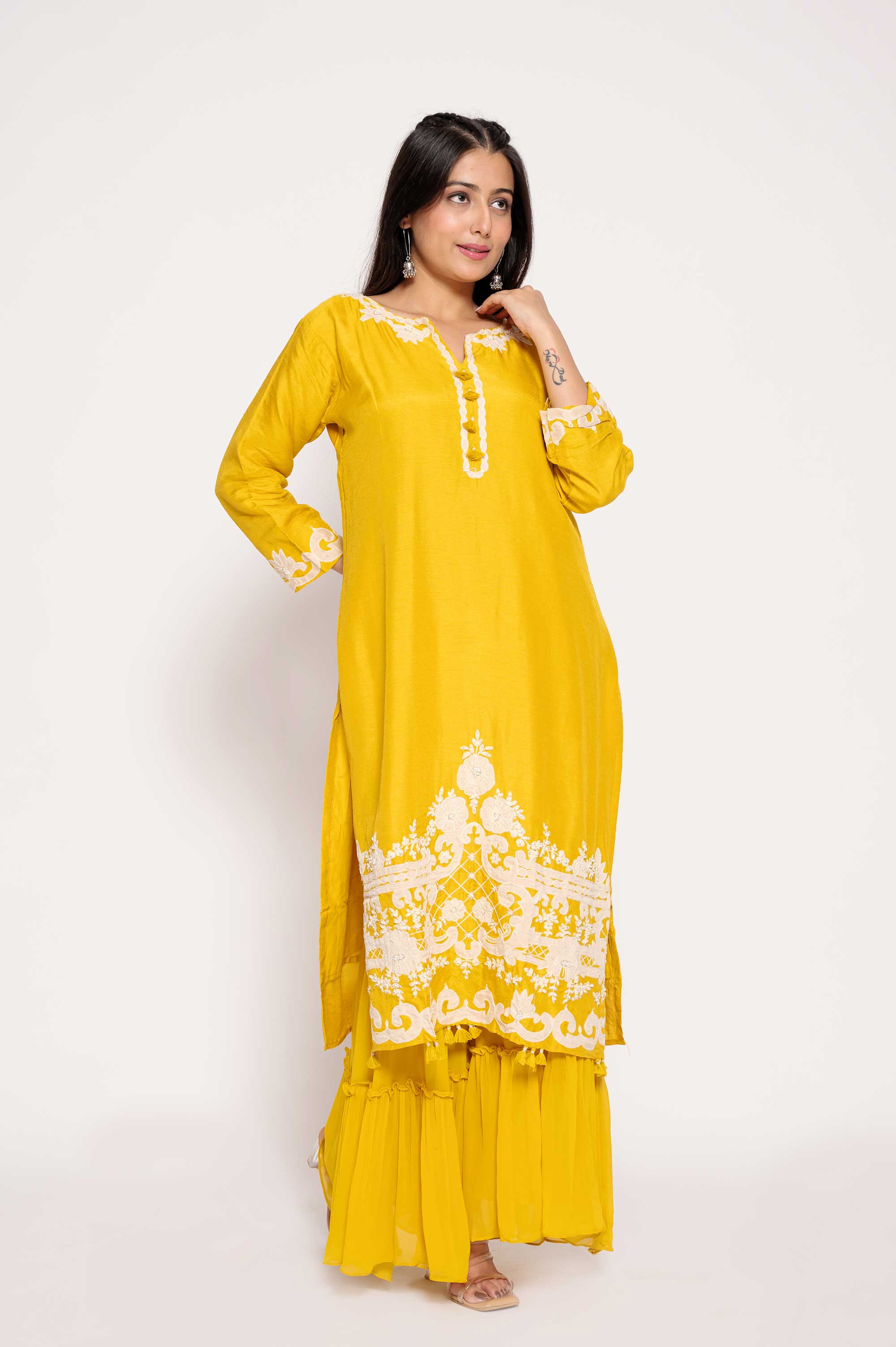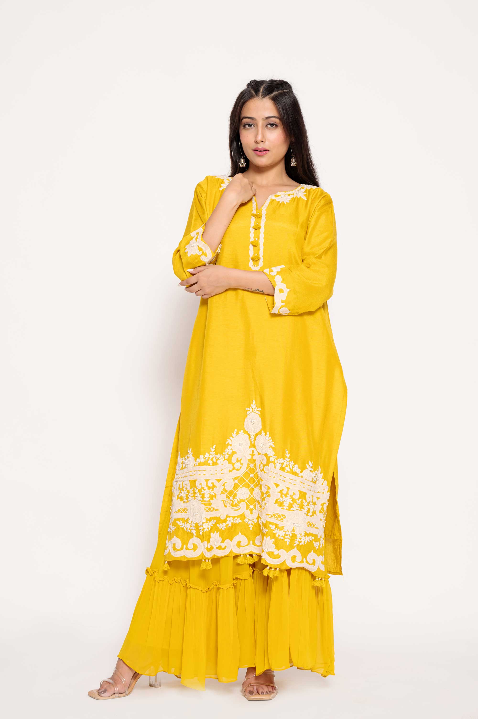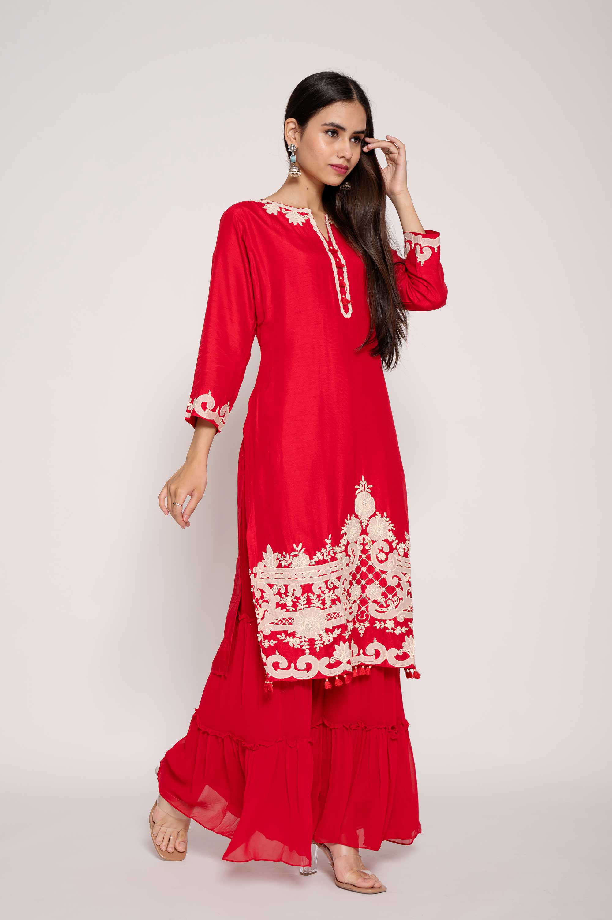 Applique Embroidered Kurta with Tassels & Flared Pants