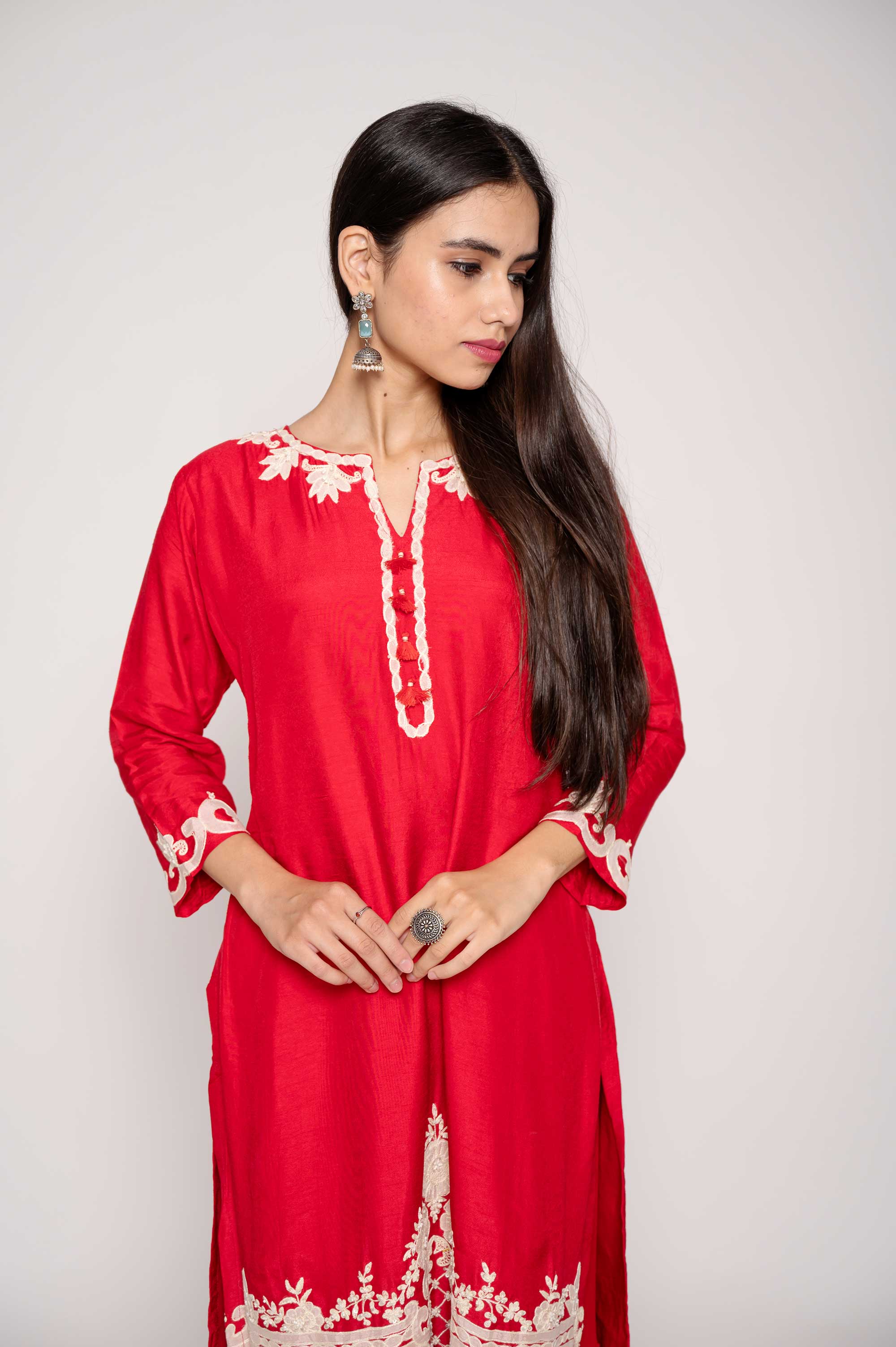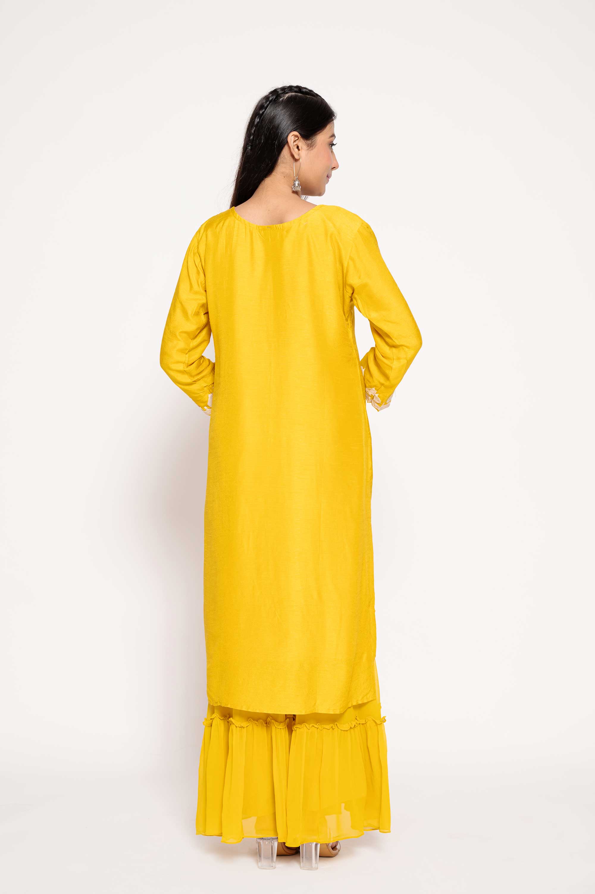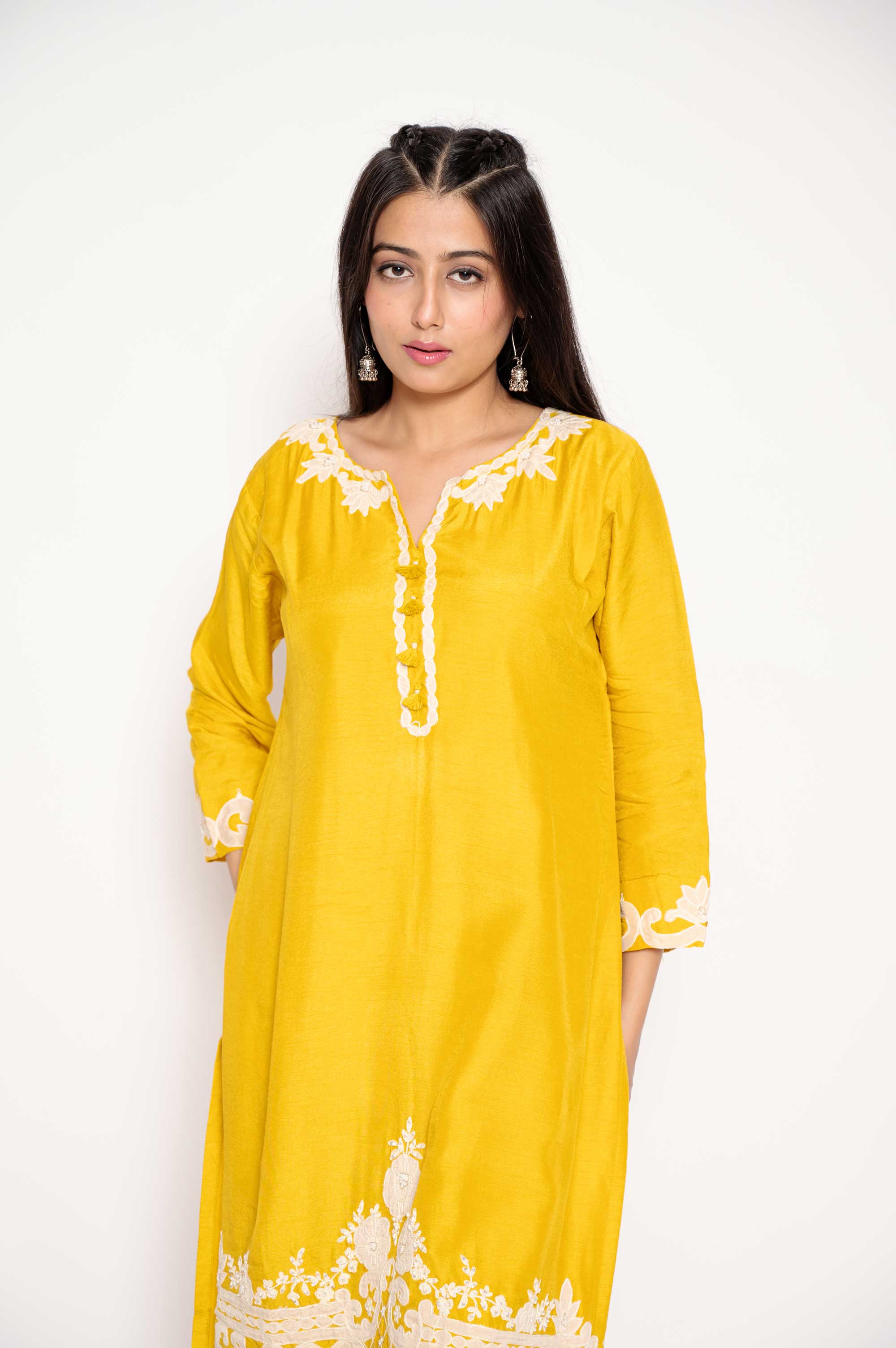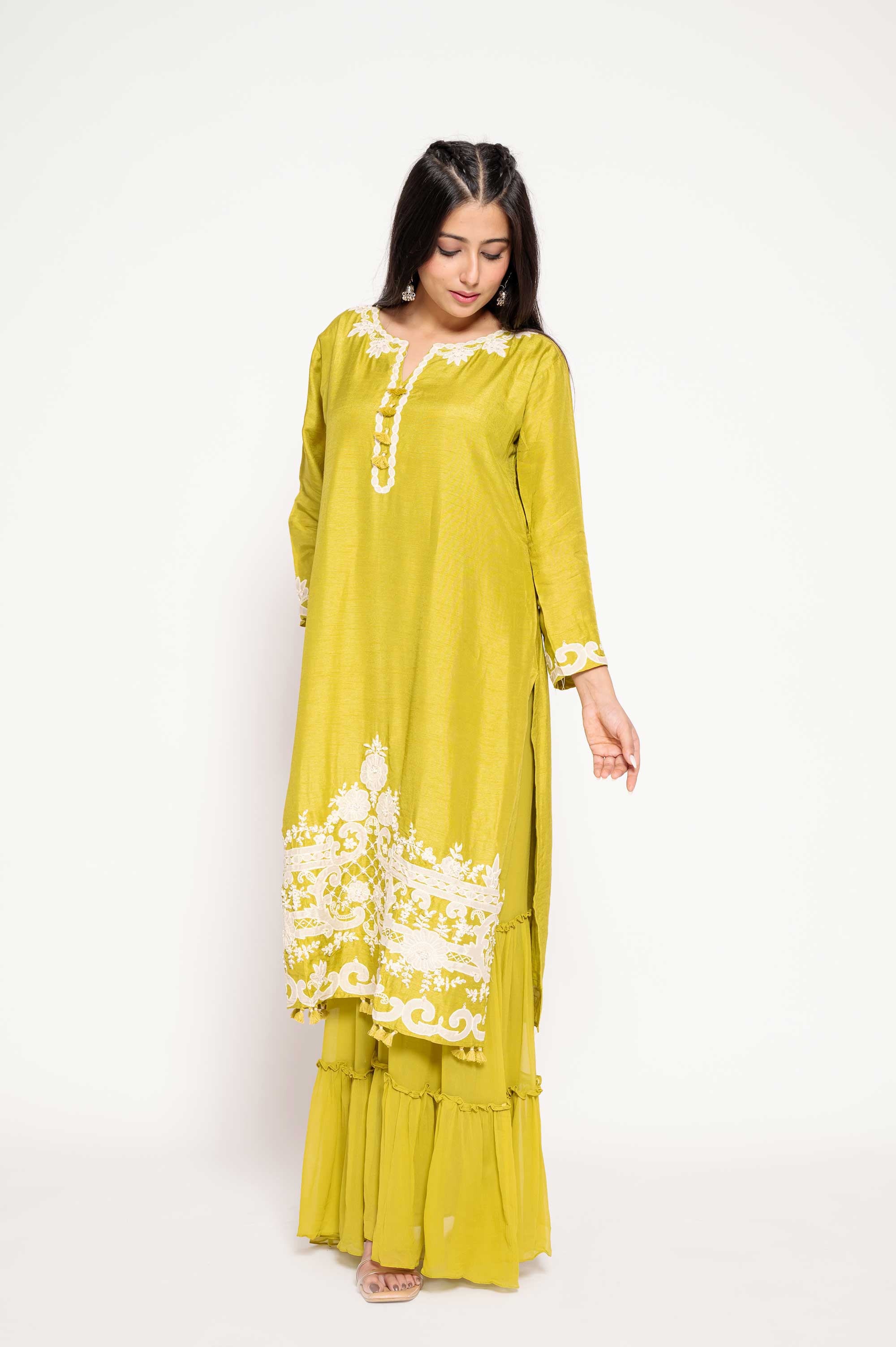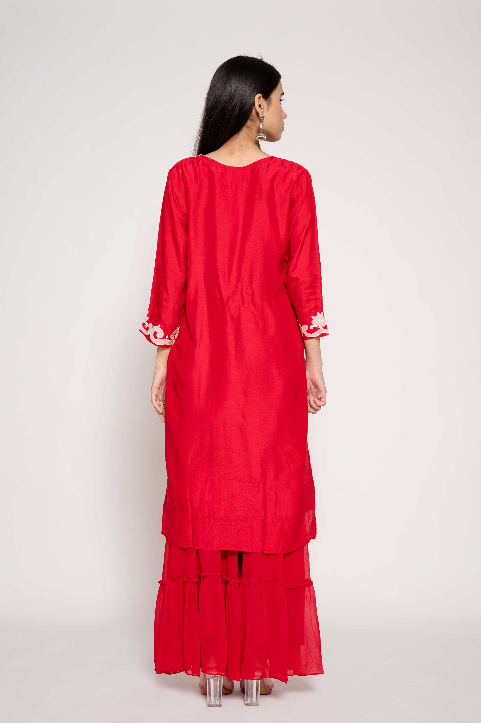 Applique Embroidered Kurta with Tassels & Flared Pants