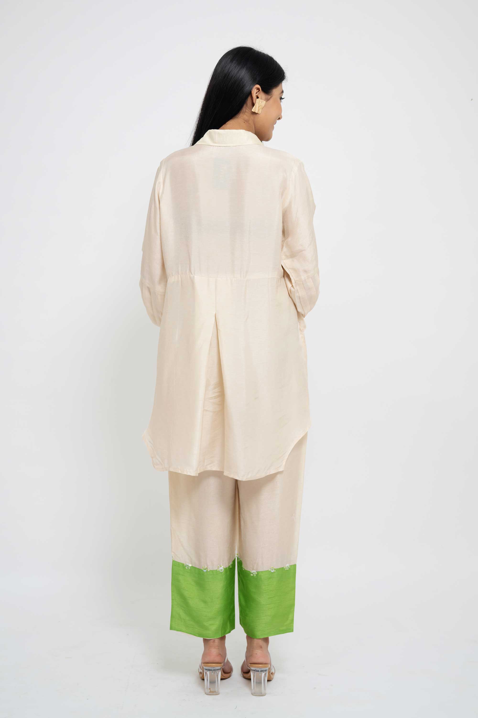 Designer High Low Coord Set with design on right shoulder, Sleeves and pant helms