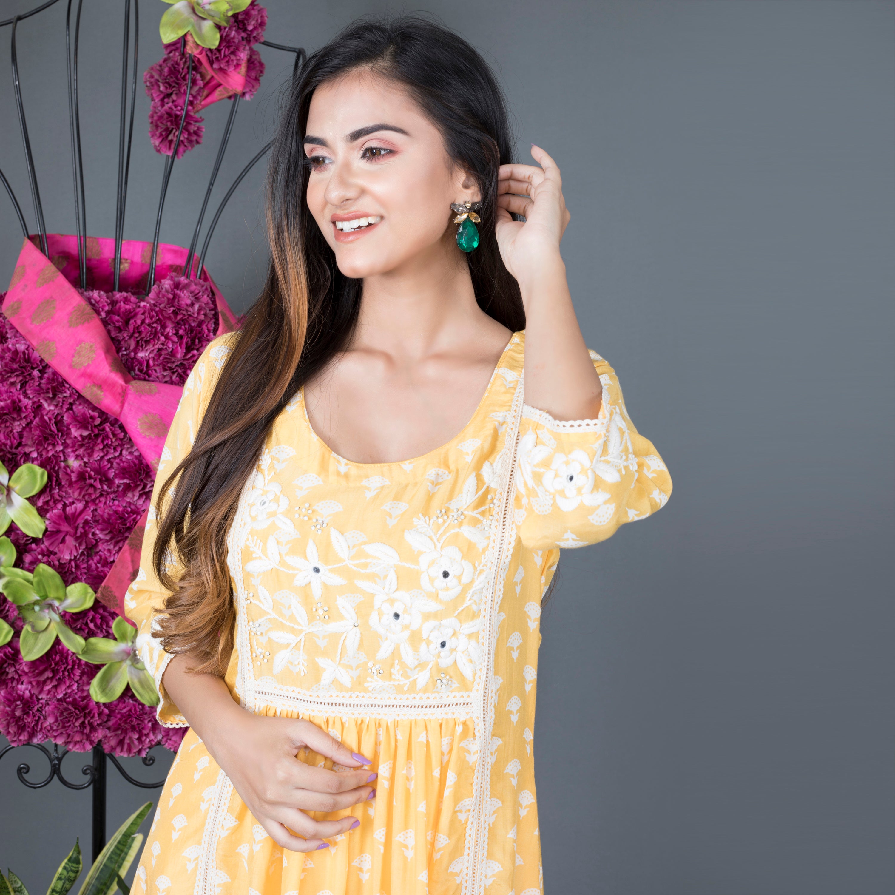 Modal Silk Frilled Resham Worked Printed Kurta With Palazzo set