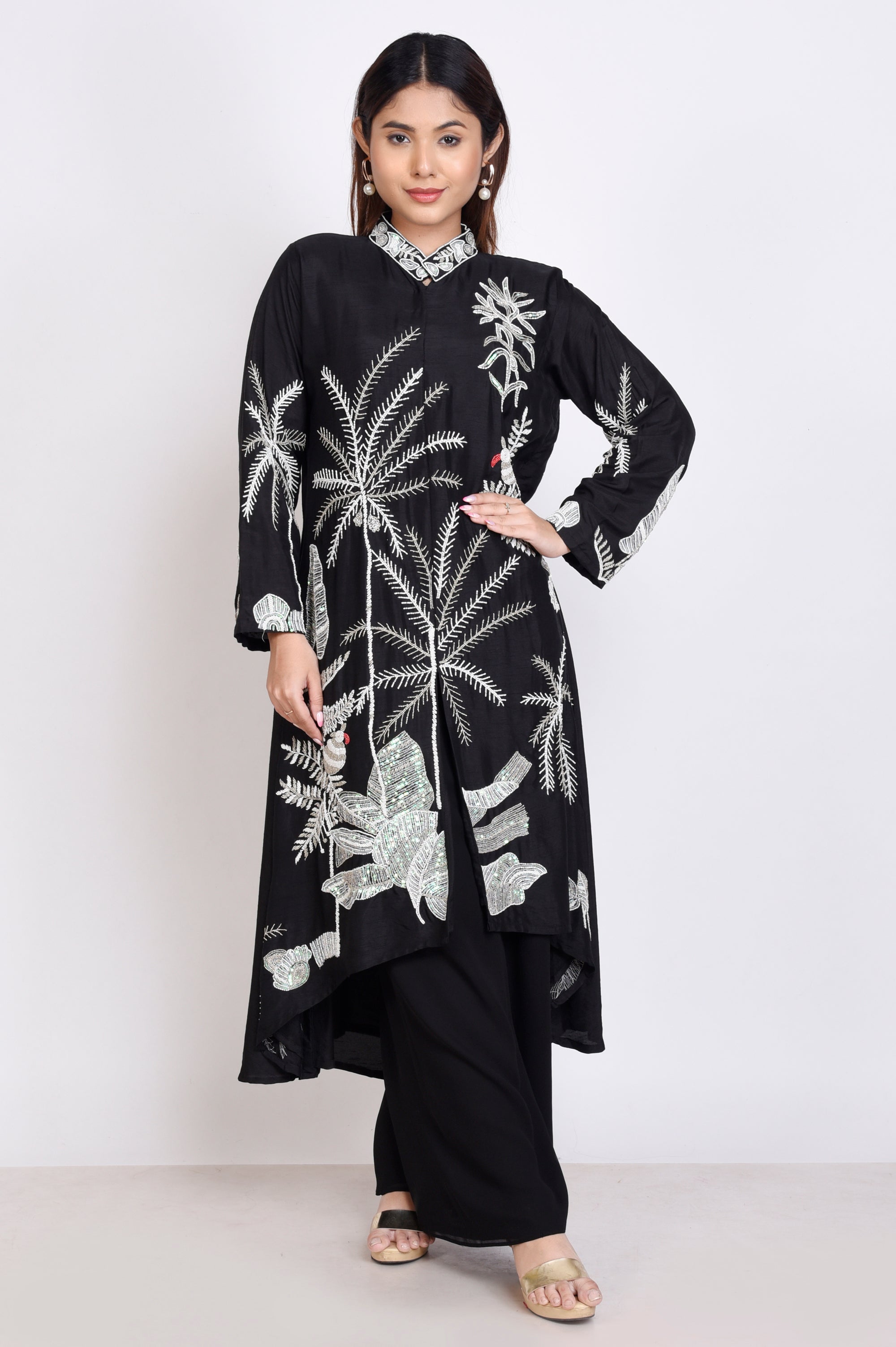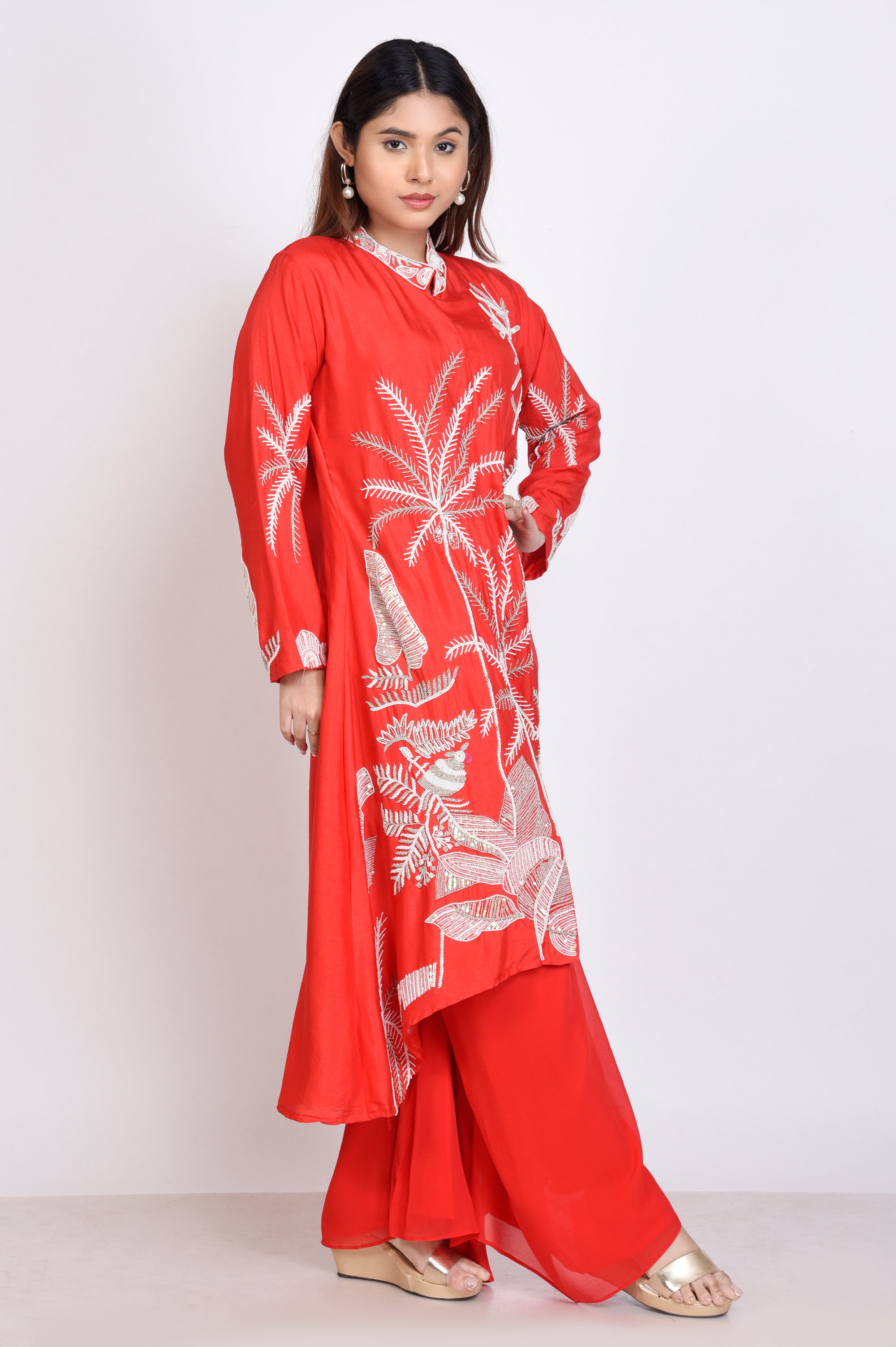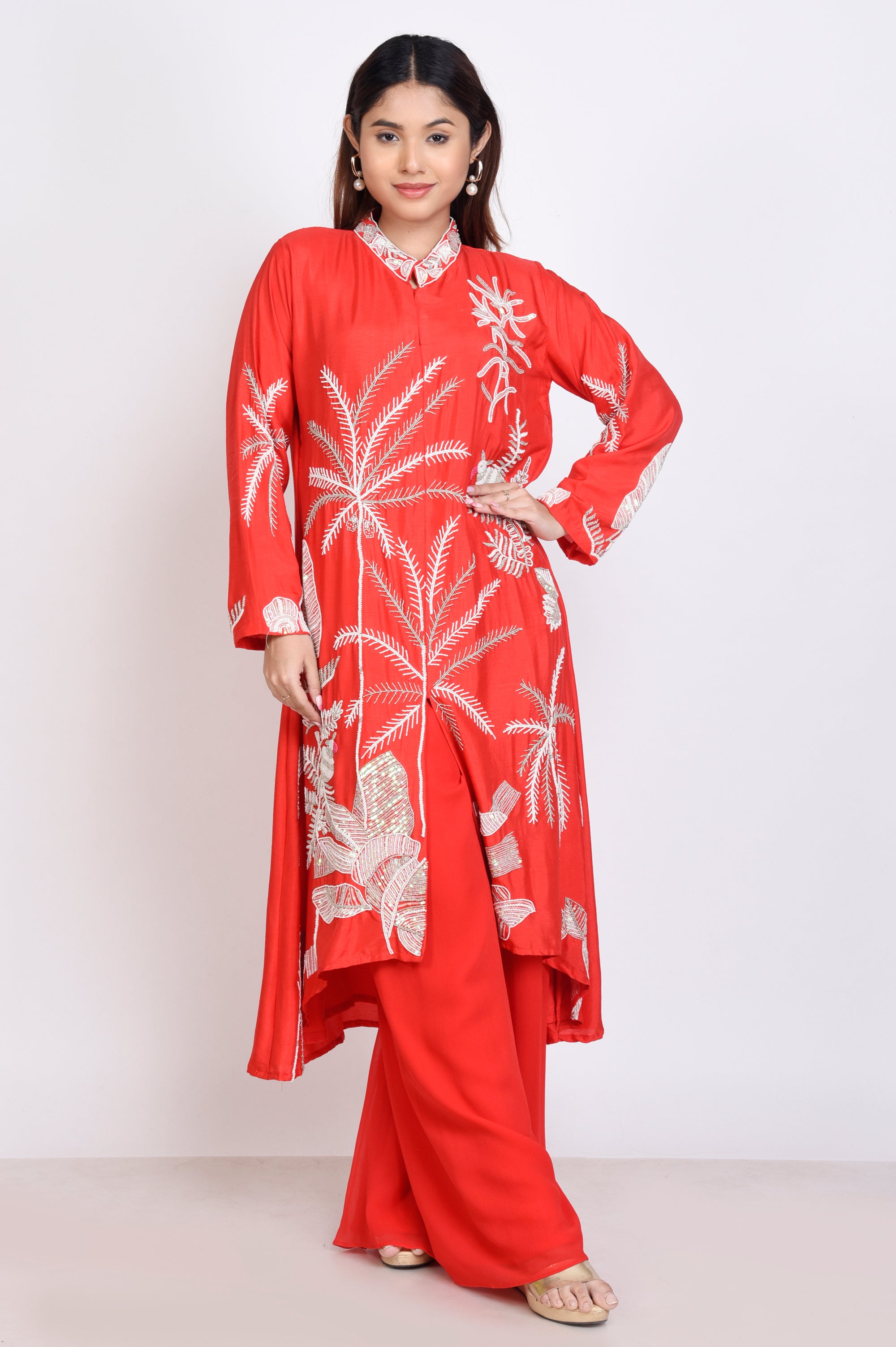Heavy Embroidery Pearl And Sequence Work In Coller & Front With Palazzo