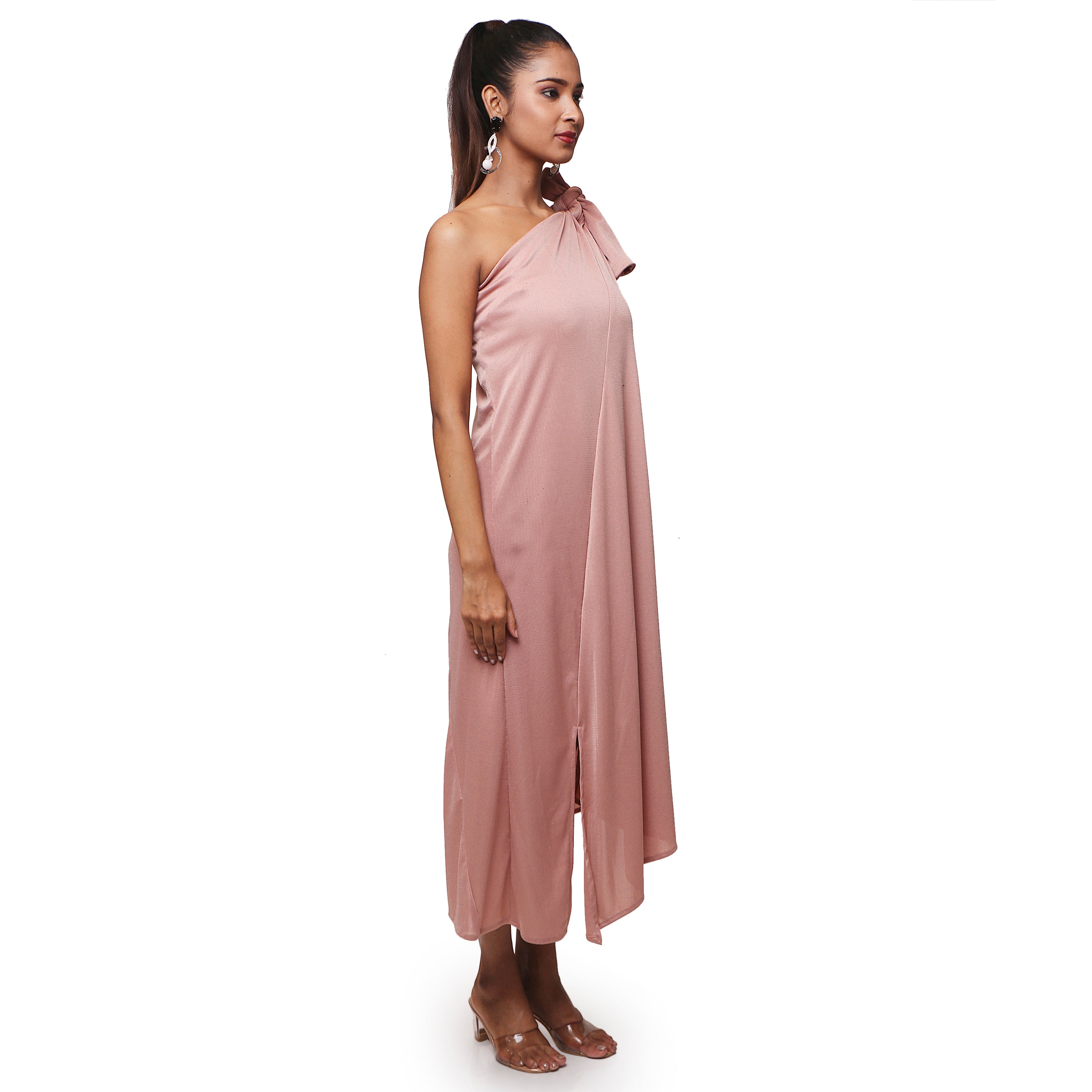One Shoulder Knotted Sleeve Dress