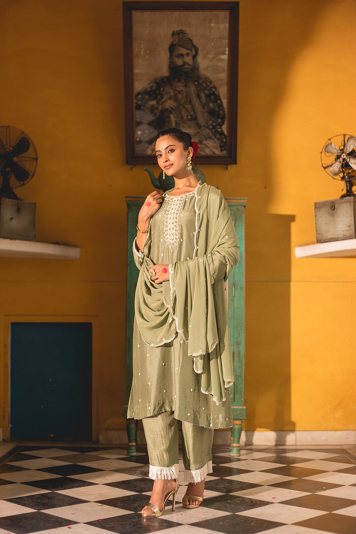 Chandari Zari Work in Yok with Dupatta