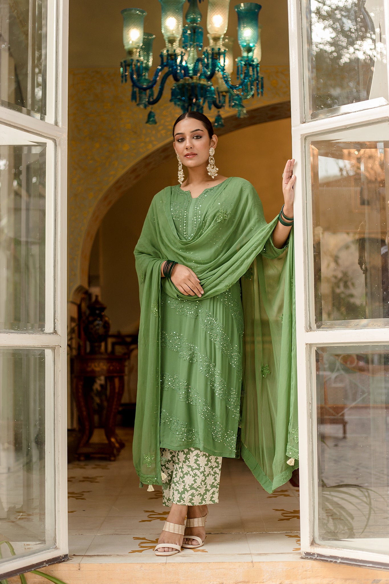 Anrakha patten suit With pant and chiffon dupatta